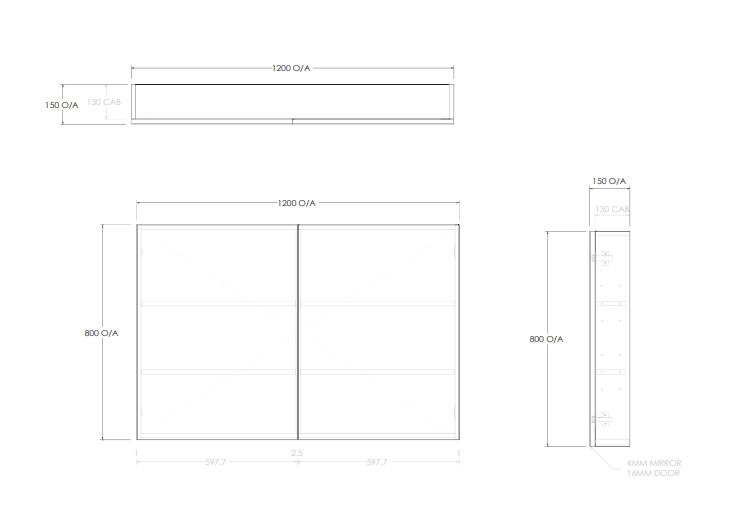 Ascot Mirror Cabinet 1200mm Polar White Matte