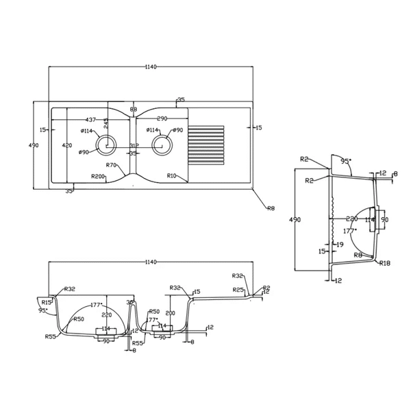 Versatile Double Bowl Layout: Offering a size of 1140x490x220-200mm, the sink provides ample space for all your kitchen needs, making it ideal for busy households or for those who love to cook.
