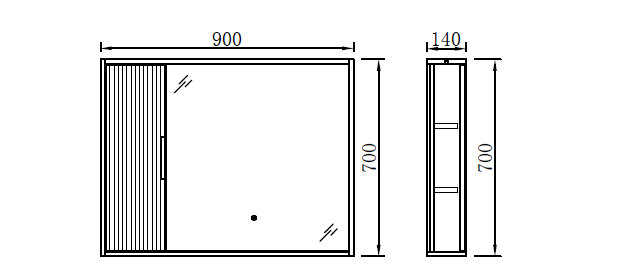 Mirror cabinet with one door & shelf, storage as per zone; with built-in light; Colour body melamine white & door matte painting Grey YQ103