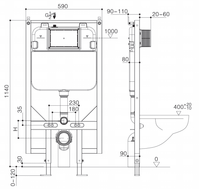 R&T In-wall Cistern for Wall Hung Toilet Pan