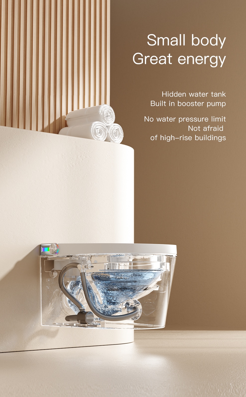 Hidden water tank system: Built-in, discreet design for easy maintenance and style.