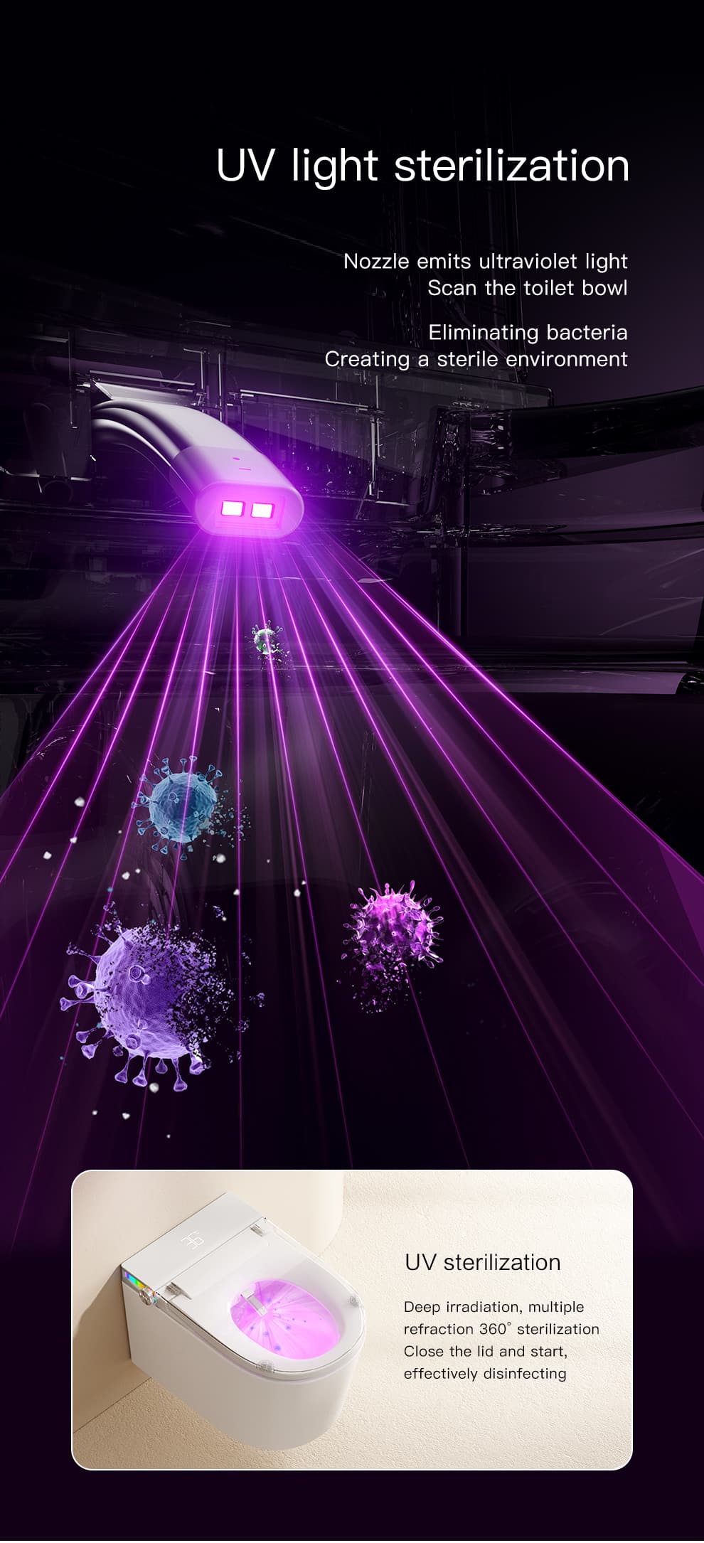 · Hygienic UV sterilisation: Keeps bacteria at bay for a cleaner experience.