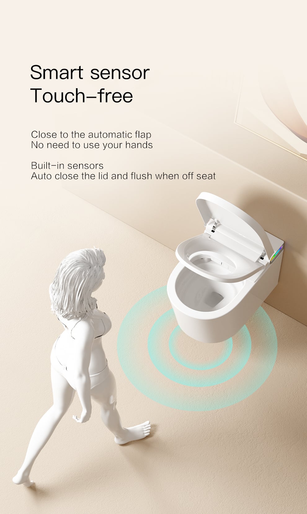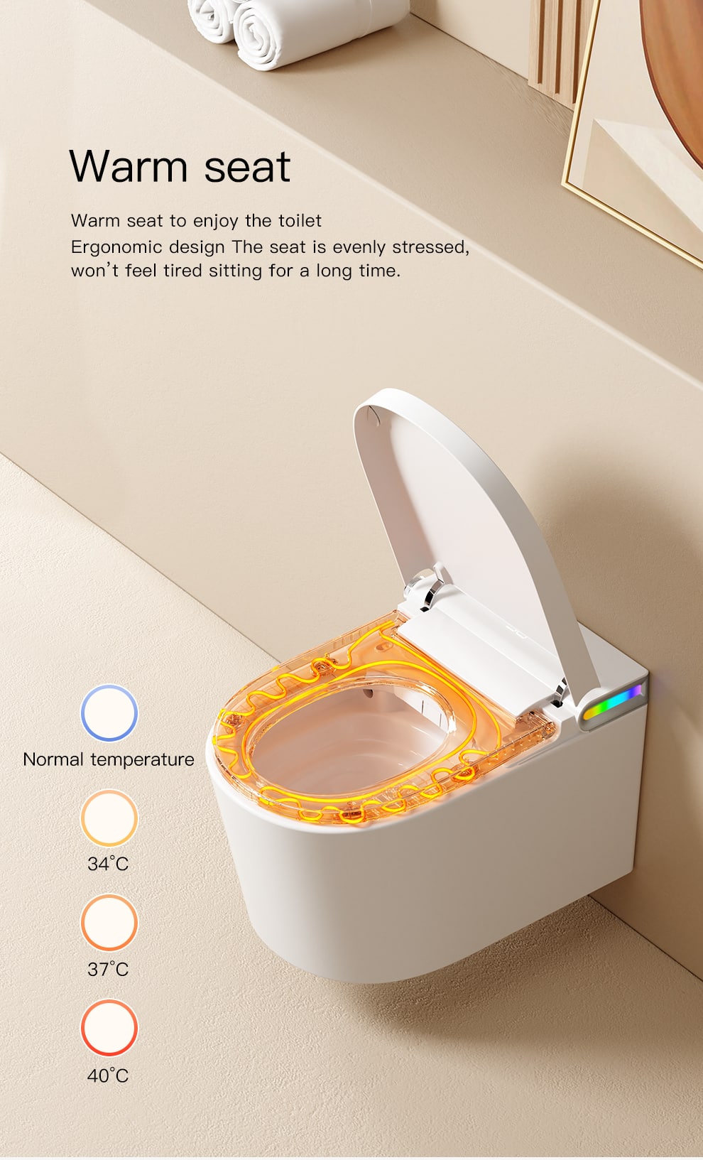Discover ultimate bathroom sophistication with the Sebastian Smart Toilet. This sleek, wall-hung unit blends cutting-edge technology with luxurious design, creating a refined experience that elevates your bathroom to a haven of modern comfort. With intuitive features like ambient lighting and Bluetooth audio, the Sebastian makes every moment feel like a spa retreat. Designed to be efficient and easy to maintain, it’s an investment in everyday indulgence.