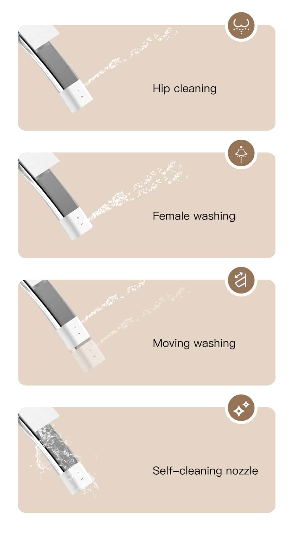Customised cleaning modes: Self-cleaning nozzle with adjustable water temperature.