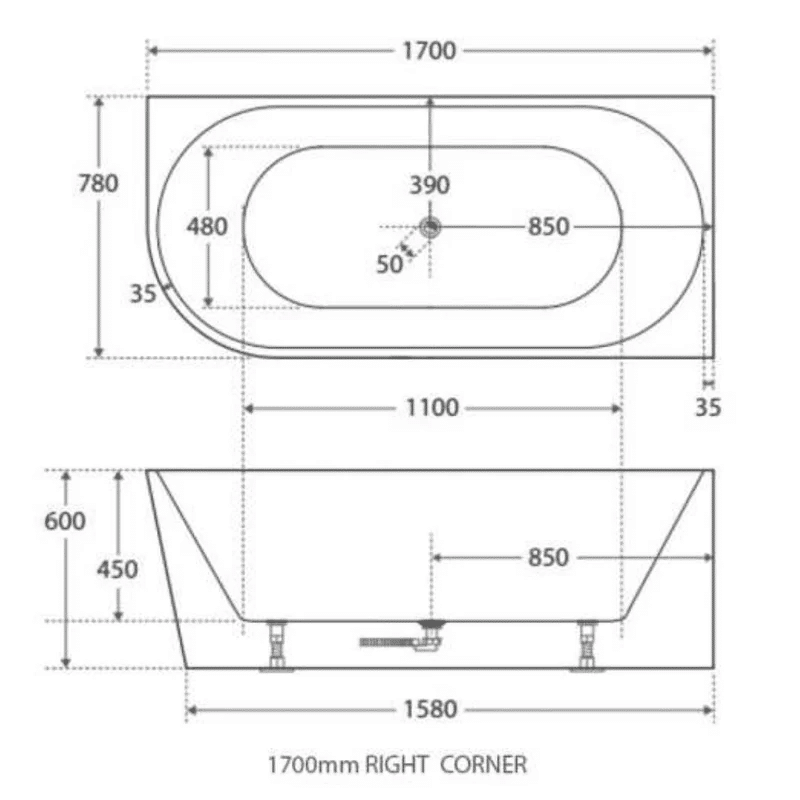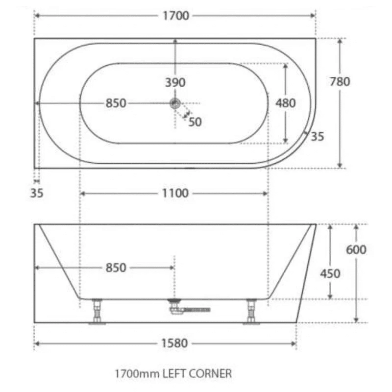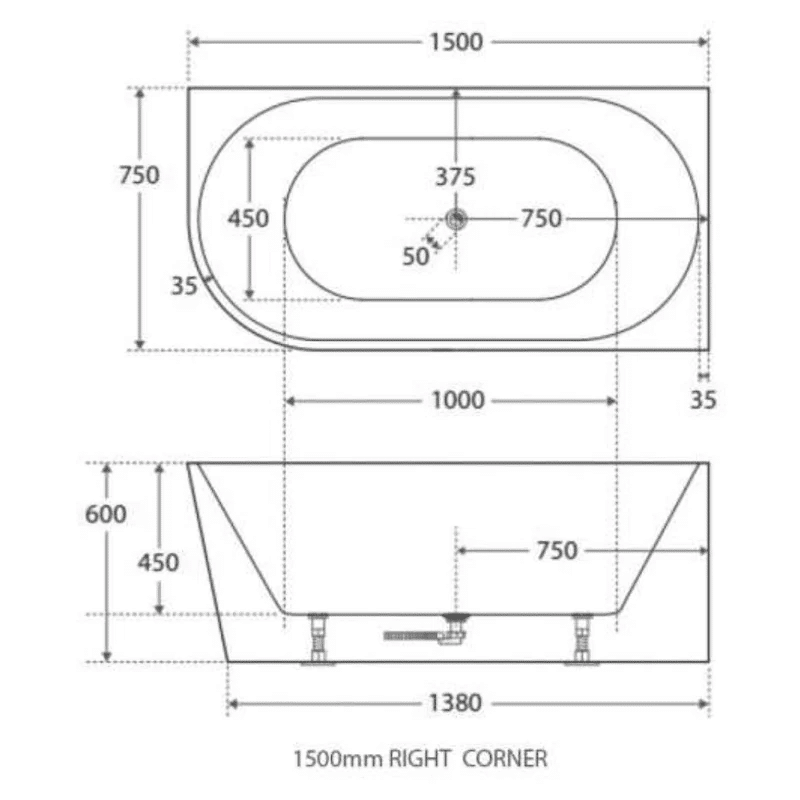 The TERRENCE Acrylic Corner bathtub embodies an impeccable blend of style and practicality, offering a luxurious retreat in the comfort of your bathroom. This bathtub is more than just a functional item; it stands as an elegant piece of art, enhancing the aesthetics of any bathroom. Designed to fit snugly into corners, it offers a space-saving solution without compromising on comfort. Its versatile design is available in two sizes and orientations, making it a perfect fit for both left and right corners.
