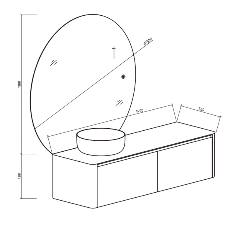 Enhance your bathroom experience with the VENICE Round LED Mirror & Anti-Fog, offering both dimmable and anti-fog features. Crafted with precision in Germany, this mirror effortlessly complements various bathroom styles and vanities. Benefit from clear reflections and personalized lighting. Bid farewell to the inconvenience of foggy mirrors with the anti-fog feature. Elevate your daily routine with this contemporary and highly functional bathroom essential, measuring 1300*25*1180mm